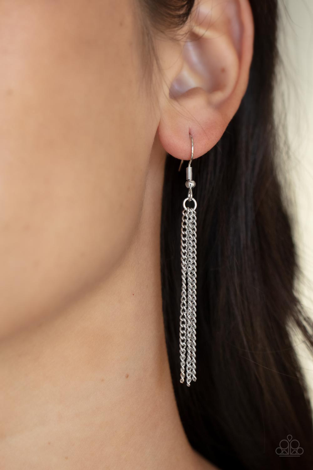Featuring an iridescent UV shimmer, an oversized blue triangular gem swings from the bottom of a lengthened silver chain. A curtain of silver chains streams out from the bottom of the sparkly pendant, adding playful movement to the glamorous statement piece. Features an adjustable clasp closure.