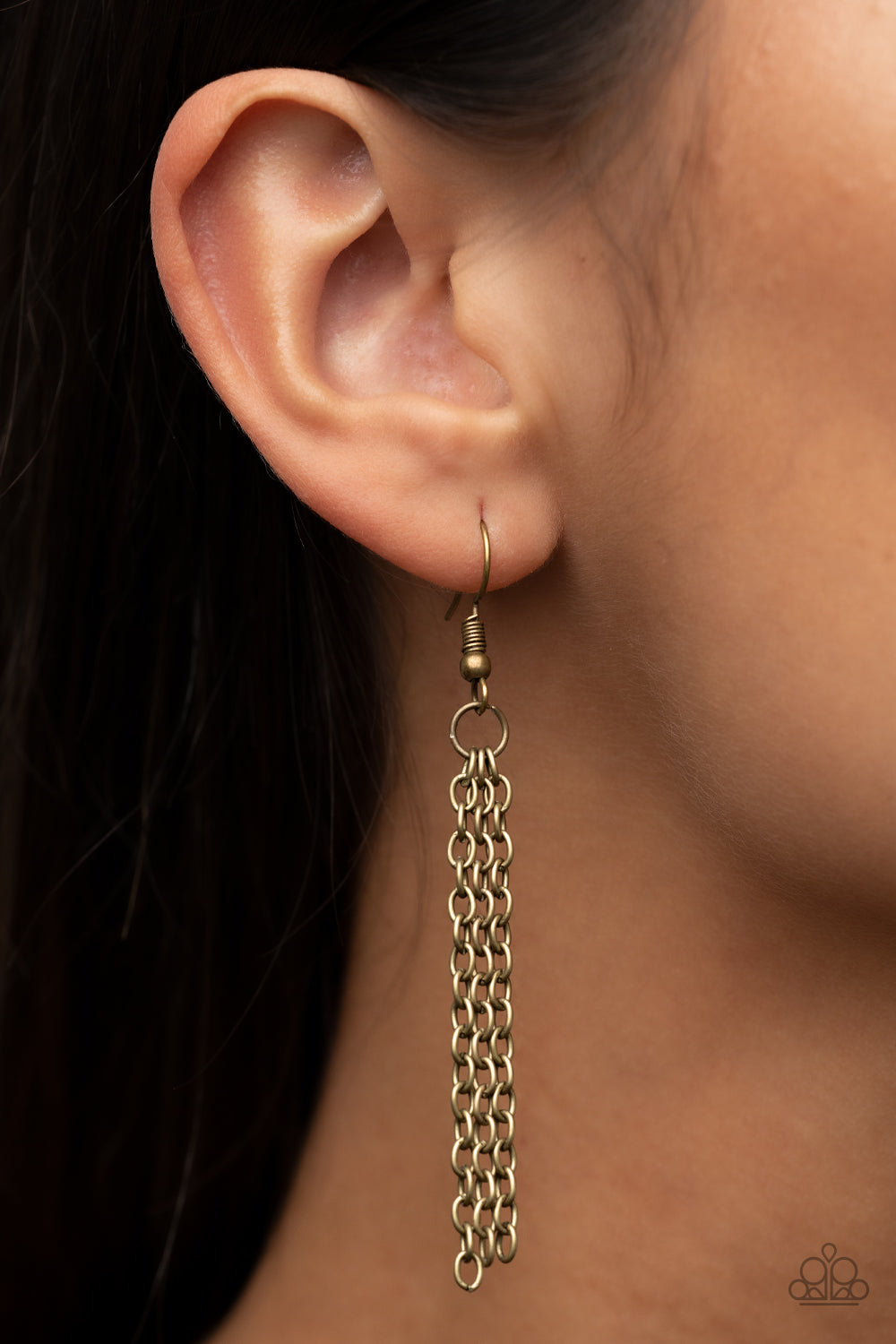 A hammered brass heart frame gently twists from a toggle closure at the bottom of a chunky brass chain, resulting in a romantically rustic pendant. Features a toggle closure.